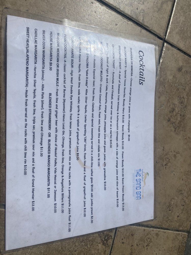 Complement your meal with refreshing local drafts like Santa Cruz Mountain Amber Ale or a signature cocktail such as the Cadillac Margarita or Blended Coconut Mojito. With fast and friendly service, and a lively atmosphere enhanced by outdoor seating and live music, The Sand Bar Capitola transforms every visit into an unforgettable experience by the water.