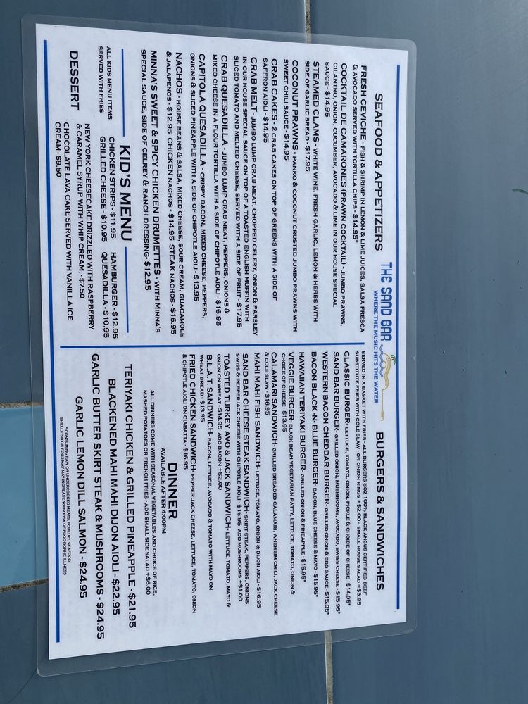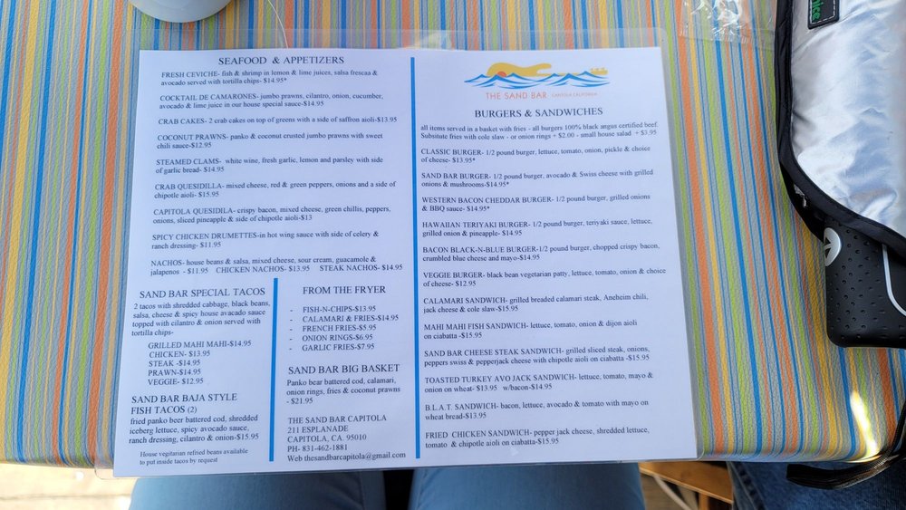 Welcome to The Sand Bar Capitola, a vibrant American eatery nestled right by the beach at 211 Esplanade, Capitola, CA. This delightful spot offers a diverse menu perfect for casual dining, with highlights that cater to every palate. Start with their flavorful clam chowder or indulge in the popular Maui Mahi sandwich, as praised by visitors for their taste and portion sizes.